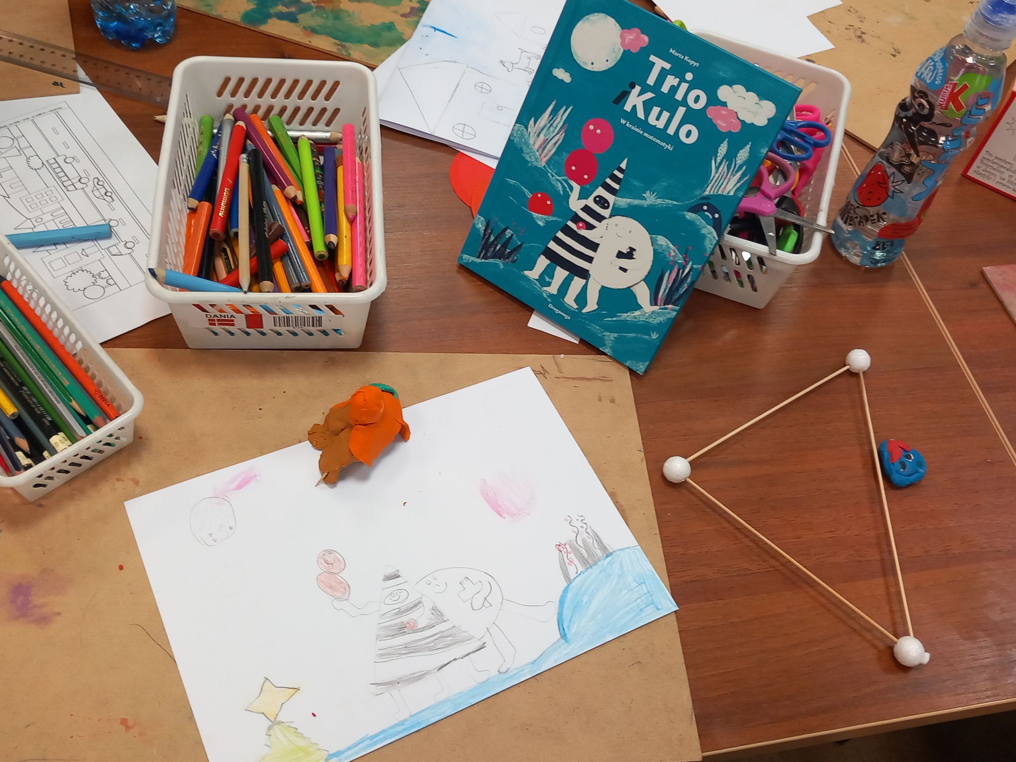 Drugi tydzień ferii rozpoczęliśmy z uczestnikami naszych zajęć "Ferie z biblioteką" podróżą do krainy matematyki wraz z bohaterami książki obrazkowej Marty Kopyt "Trio i Kulo. W krainie matematyki", która w sposób dowcipny i prosty zaprasza dzieci w świat matematyki i zapoznaje je z prostymi pojęciami geometrycznymi.